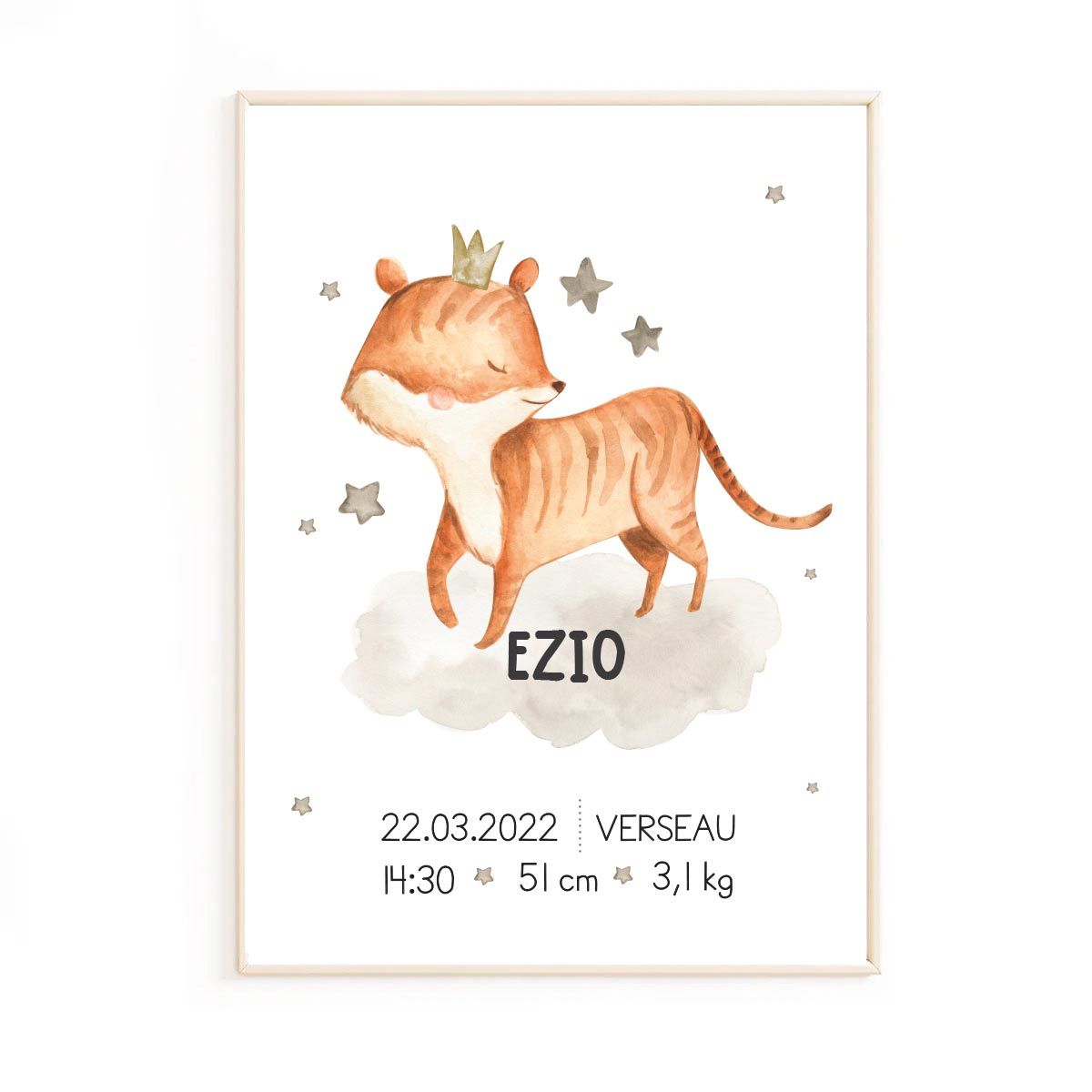 - Poster de naissance pour bébé A4 ou 30x40cm ou 50x70cm