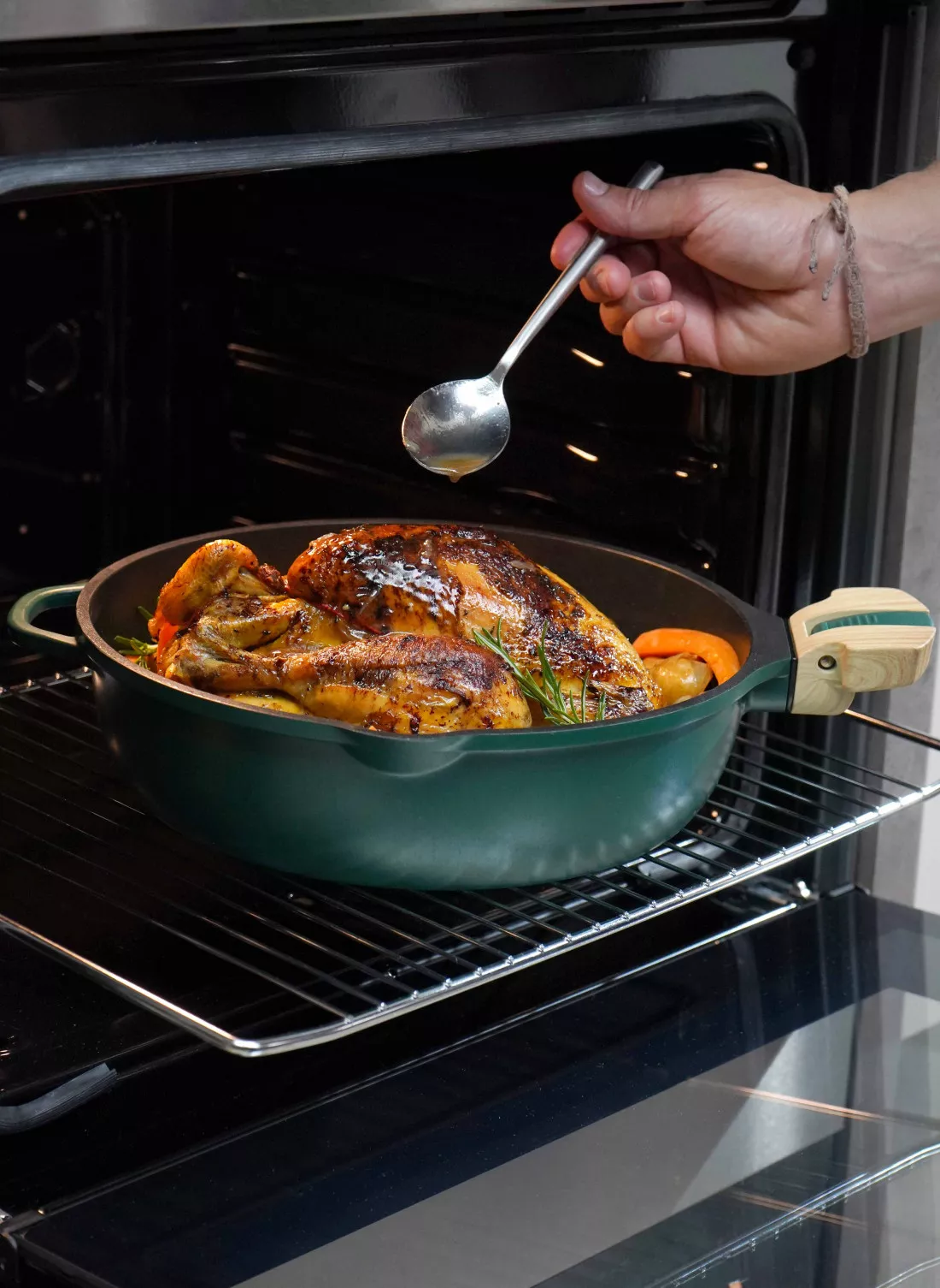 - Couvercle avec système d’auto-arrosage des viandes